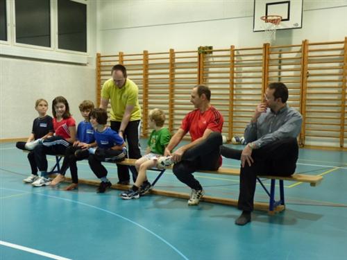 Heute kam Michael Rothe Physiotherapeut aus Bauma zu uns in die Halle. Während sich die Kinder mit Ballspielen und Stafetten warm machten. Wurden die Eltern im Nebenraum über die Wichtigkeit des Dehnens informiert.