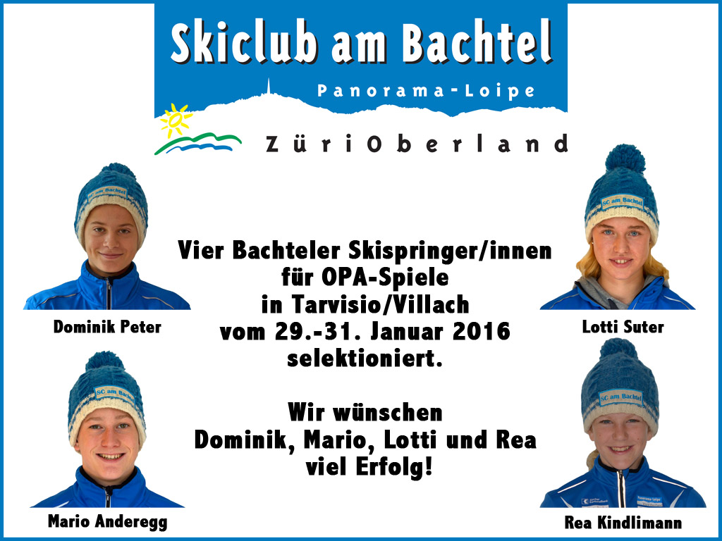 Leider nicht dabei sein wird Lars Kindlimann, der nach wie vor mit gesundheitlichen Problemen zu kämpfen hat und seit längerer Zeit keinen Sprung mehr machen konnte, aber als 00er hat er im nächsten Jahr nochmals die Möglichkeit für eine Teilnahme. Wir wünschen uns, dass im nächsten Jahr ein komplettes Bachteler Damenteam (mind. 3 Athletinnen) an den OPA-Spielen dabei sein kann und vielleicht klappt es dann auch wiedermal mit einem Nordisch Kombinierer, wer weiss...wir arbeiten weiter.